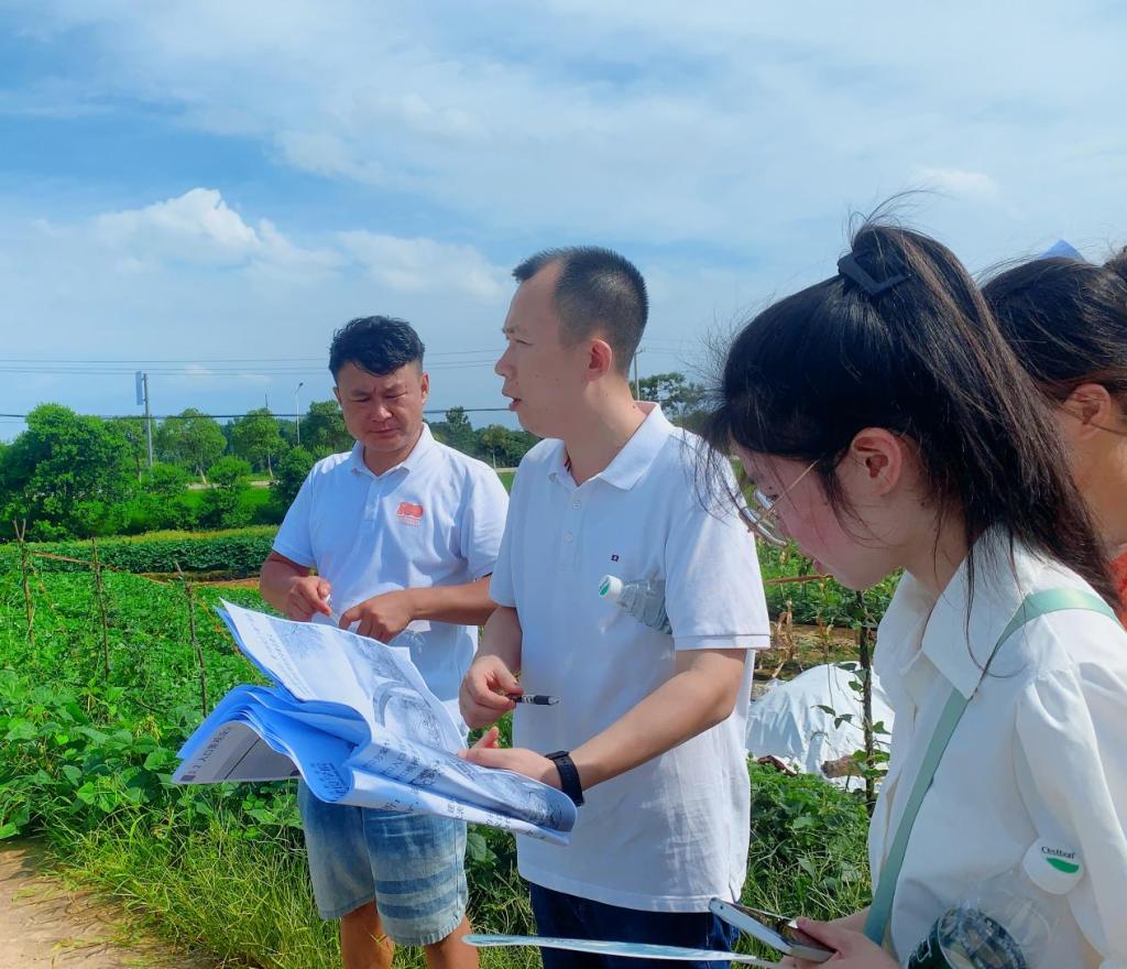 图为夏堇·乡村规划建设献策实践队同村委委员进行实地踏勘