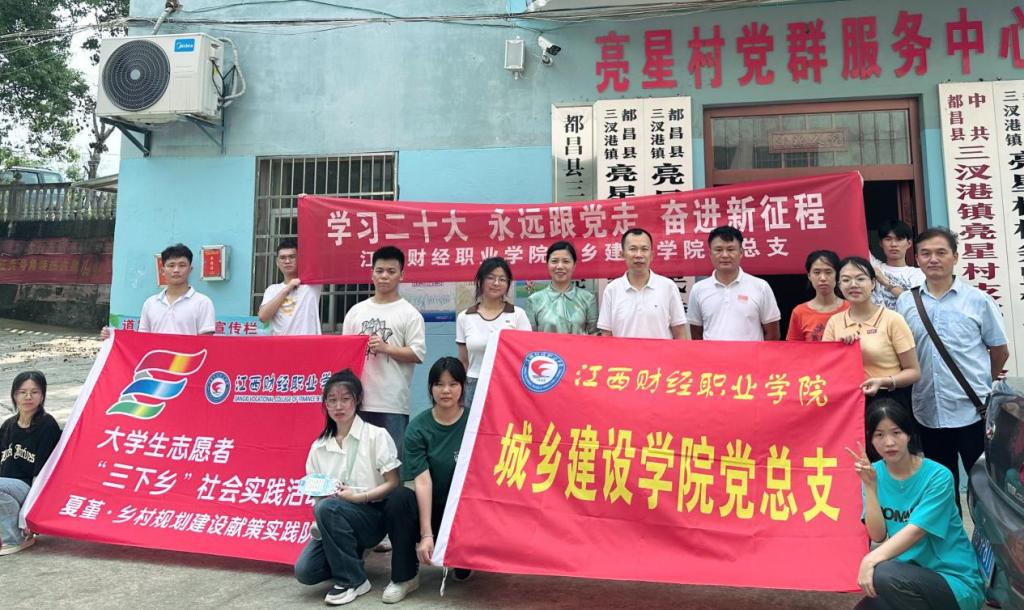为全面贯彻落实党的二十大精神,推进学习贯彻习近平新时代中国特色社会主义思想主题教育走深走实,全面推进乡村振兴。2023年7月3日,城乡建设学院“夏堇·乡村规划建设献策实践队”前往江西省九江市都昌县三汊港镇亮星村,开展暑期“三下乡”社会实践活动,以“技术下乡”为主要手段,深入了解亮星村村镇规划情况,搭建临时工作室,进行实地踏勘和初步测绘,计划为亮星村提供村镇规划建议方案,以专业知识服务秀美乡村建设。