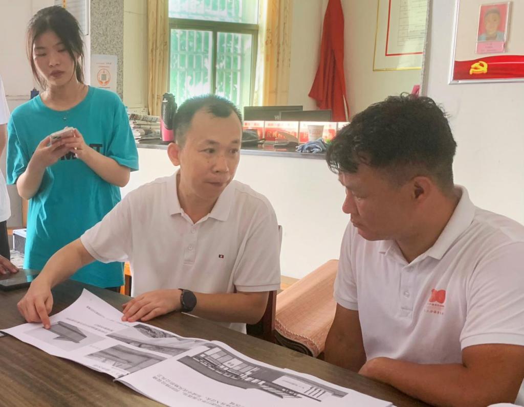 图为夏堇·乡村规划建设献策实践队与村委会委员进行初步探讨