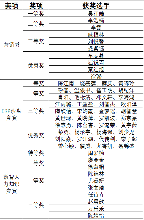 “赢在商战”第八季比赛获奖名单如下。