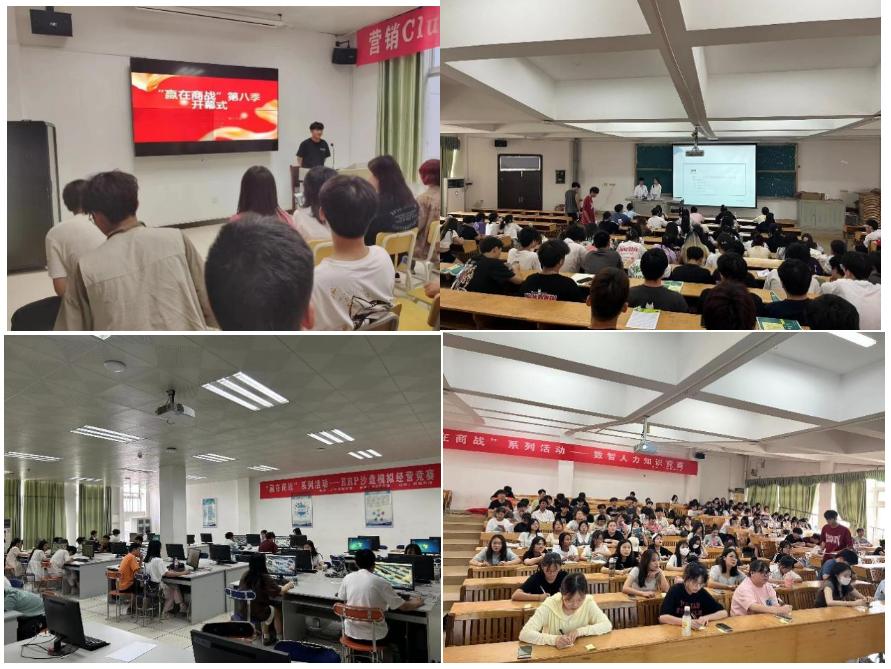 “赢在商战”系列活动由营销秀、ERP沙盘模拟经营竞赛、数智人力知识竞赛三个赛项及衍生项目“学长学姐聊职场”组成,旨在搭建学生技能竞赛、校企合作交流、教师教学研讨于一体的平台,促进“赛学一体、双堂融合、多元共育”的人才培养模式改革及以竞赛文化、社团文化、职场文化为内涵的专业群文化建设。“赢在商战”第八季系列活动精心策划,通过海报,条幅,多媒体等多种形式的大力宣传,经过初赛、复赛、决赛三轮角逐,所有赛项圆满结束。