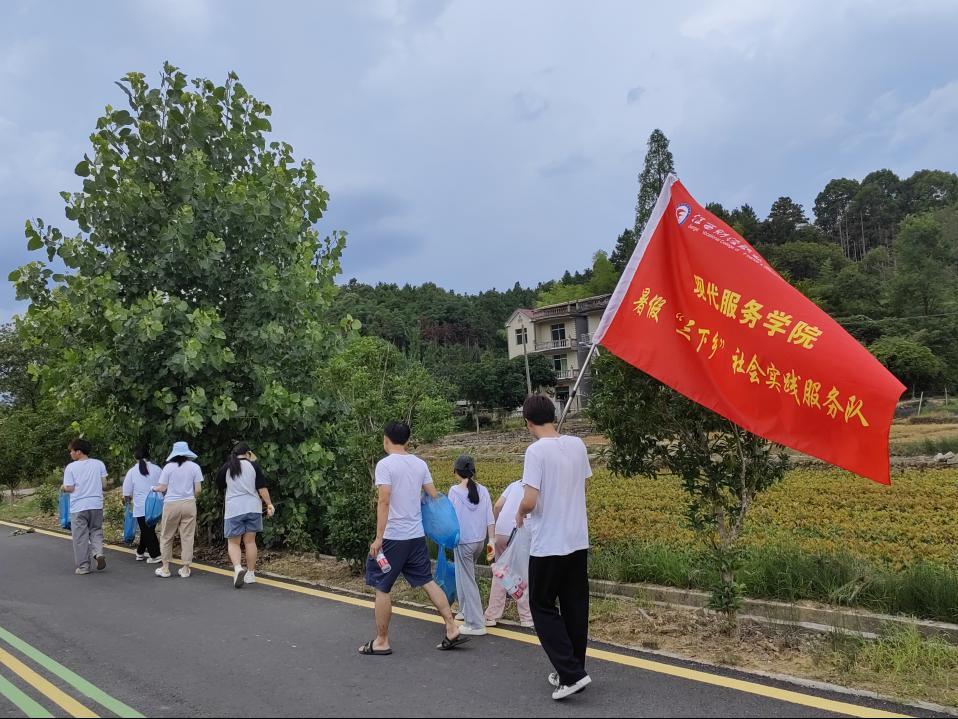 实践队面向基层群众,切实开展乡村服务,用实际行动诠释新时代青年的责任与担当。队员下乡走访,对村民关心的耕地保护、宅基地政策等进行专题调研,现场为村民答疑解惑;队员在村干部的带领下,走访慰问部分村组困难家庭,与村干部一起倾听他们的诉求,协商后续帮扶举措,队员以困难学生先进事迹为例,通过身边人、身边事,激励困难家庭的孩子不畏艰难,不卑不亢;实践队还积极参与到环境保护活动中,借用清扫工具,捡拾垃圾,和村民一起守护秀美乡村;为了更好地学习新型农业生产经验,队员们参观了江上生态农业鱼菜生产基地,了解当地农业的现代化发展状况,学习传播新时代惠农富农强农好声音。