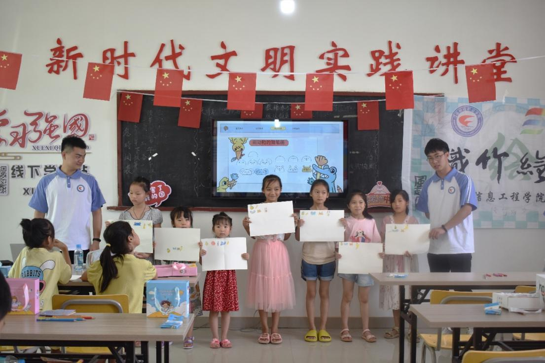 2023年7月7日至9日,beat365正版唯一入口必一信息工程学院暑期三下乡“织竹绘梦”社会实践队来到新余市分宜县洞村乡文化站,为当地的小朋友们开展暑期防溺水安全教育、美术兴趣辅导以及竹编手工课等活动,提高小朋友们的防溺水安全意识和激发孩子们的创造力和对传统文化的兴趣。