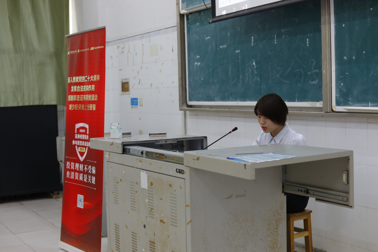 长江证券合规专员王秀娟通过真实案例深入浅出的讲解,为师生们普及了金融诈骗、电信诈骗等行为的特点和危害。长江证券资深投资顾问蒋东辉还详细介绍了证券发展历史和相关金融知识。同学们纷纷表示一定会提高自我保护能力,树立正确的价值观。