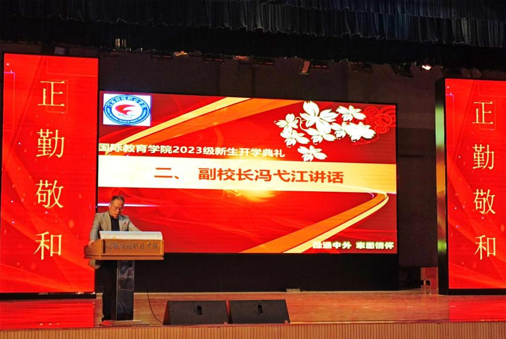 10月10日上午,国际教育学院2023级新生开学典礼在英才交流中心隆重举行。校党委委员、副校长冯弋江教授出席典礼,国际教育学院党政负责人、外籍教师Dallas和各教研室主任、新生班主任及2023级全体同学参加了典礼。开学典礼由党政办公室主任王禾传主持。