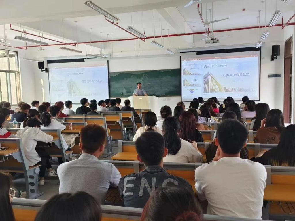 专业介绍环节中,证券教研室李绍及曹晗曦老师详细解读了各专业的课程设置、专业特点以及实际应用领域;在学业规划环节,李老师引导学生规划自己的学业生涯、制定明确的学习目标;在职业前景环节中,曹老师为同学们辨析了不同专业未来的发展方向,同时分享了毕业学长学姐们的心得体会,这些宝贵的经验故事激励了新生,让他们更加有信心地迎接未来的职业挑战。