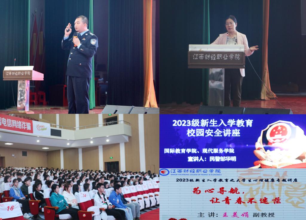为使安全意识和心理健康教育深入人心,提高大学生安全防范意识和促进身心健康,现代服务学院和国际教育学院联合开展了安全知识讲座及心理健康讲座。10月10日上午,在英才交流中心举办了安全知识讲座,庐山南路派出所邹华明警官给新生上了一堂生动的安全教育课,他从电信诈骗案例警示入手,给大家做安全预警,提醒大家注意识骗防骗,提高反诈意识和技巧;beat365官网心理咨询中心负责人王美娟副教授为2023级新生带来了《为心导航,让青春不迷茫》的专题讲座。她从我院人才培养目标出发,引出“你想成为什么样的人才”的思考,引导大家结合目标,做到优化自身心理品质,并且以真实案例,讲解心理健康的重要性,鼓励大家培养积极阳光心态,结合简单实用的心理自评工具,更好地了解自己的心理健康状况。两场讲座,从反诈宣传到心理健康教育,提醒学生注意提高安全意识和健全心理素养。安全、和谐、文明校园根植于新生内心。