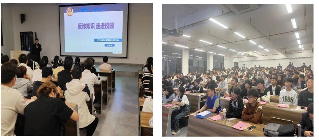 为提高全体2023级新生预防电信网络诈骗意识和能力,筑牢校园防诈防骗安全防线,10月13日,工商管理学院邀请八里湖刑侦大队反诈中队长陈永吉警官及九江经济技术开发区人民检察院吕洪伟检察官在beat365官网八里湖校区开展“防范新型电信网络诈骗”安全教育专题讲座。工商管理学院党总支副书记赵新村、2023级新生260余人参加本次讲座。