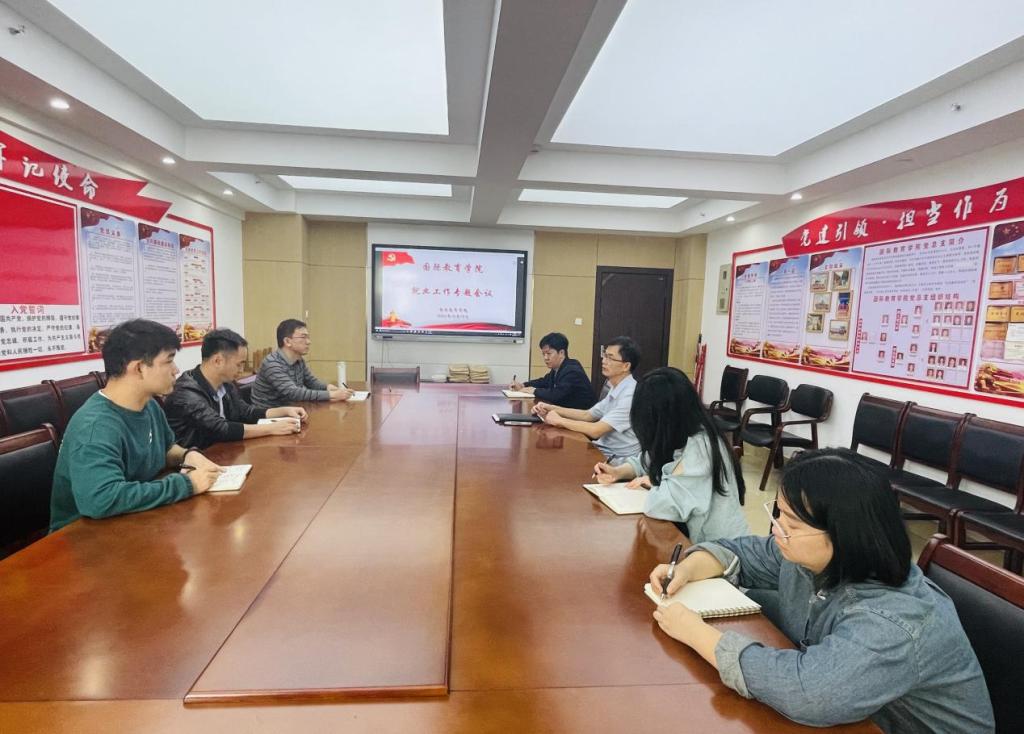 为研判分析2024届毕业生就业形势,扎实做好2024届毕业生就业工作,2023年10月19日上午,国际教育学院2024届就业工作推进会在综合楼918会议室举行。会议由总支书记王胜华主持,副院长杨瑞(主持工作)、副院长曹云波、总支部委员兼办公室主任王禾传、就业干事叶慎奎,毕业班班主任业方琼、李颖参加。