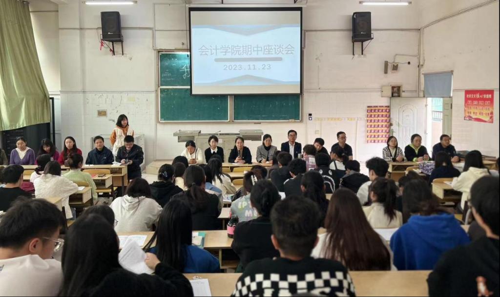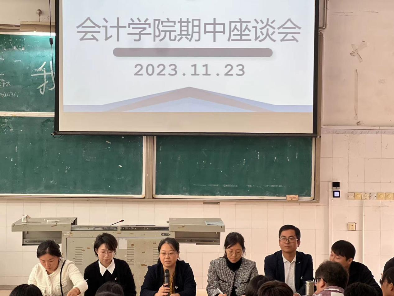 为进一步掌握教学动态、评估教学质量、反馈教学信息,明确今后整改的努力方向,更细致了解各年级学生的专业学习和生活状况,11月23日下午,会计学院于浔阳校区教学楼617教室召开21、22级会计类专业2023-2024学年第一学期期中教学座谈会。会计学院院长万凯、副院长齐洁、各教研室主任及课程组教师代表出席座谈会,由赵琪老师主持,师生展开面对面交流。