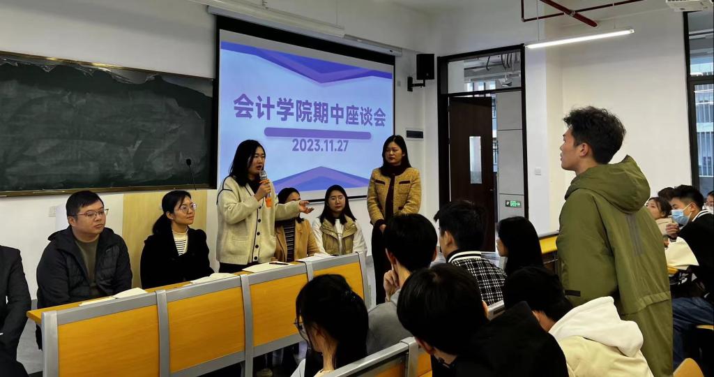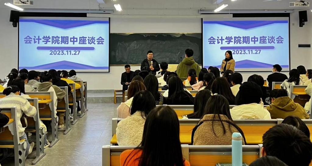 为进一步增强教学质量和管理服务工作的针对性和实效性,促进学校与学生之间的良好沟通,11月27日下午四点,会计学院在beat365正版唯一入口必一八里湖校区教学楼337教室组织召开会计学院期中座谈会,会计学院副院长齐洁、副书记杨燕、专业任课教师代表及23届各班代表共同参会,会议由刘俊英老师主持。