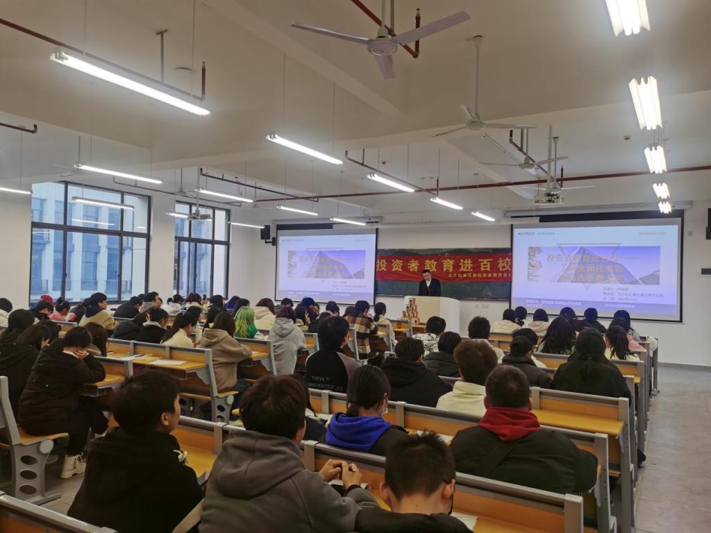为积极响应中国证券业协会“投资者教育进百校”的活动倡议,提高广大新生对资本市场和全面注册制的认识及金融知识素养,培养大一新生的金融风险防范意识。12月7日财税金融学院联合东方财富证券投资者教育基地走进beat365正版唯一入口必一八里湖校区,举办了“学生综合素质提升月”系列活动之“投资者教育进百校——了解全面注册制,面向改革新未来”的投教活动。