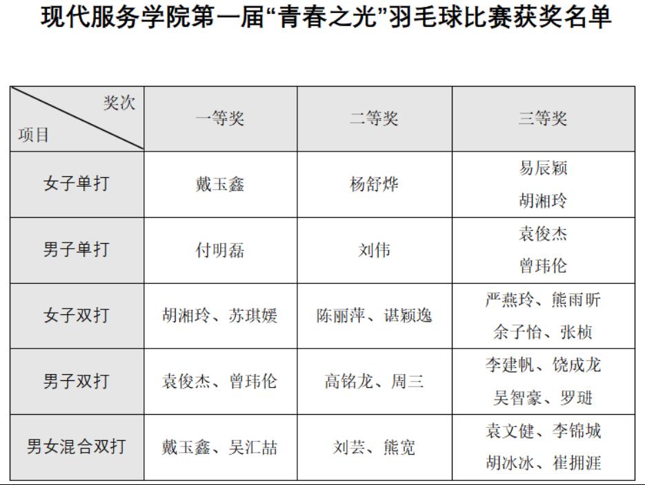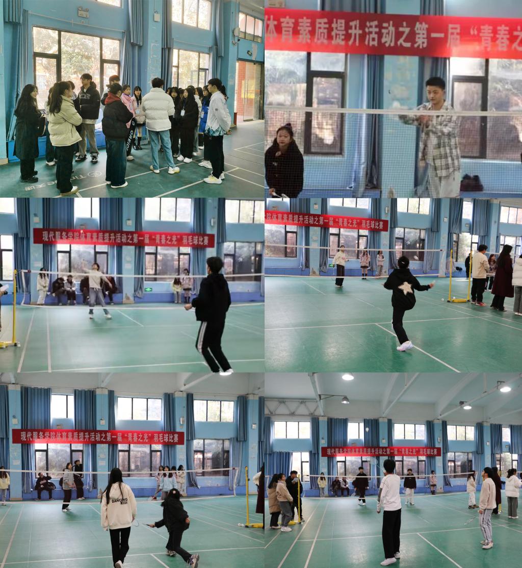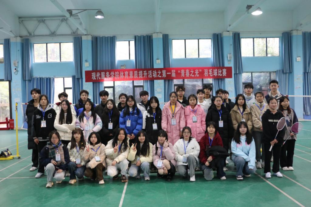 为丰富校园文化生活,激发学生的运动兴趣,促进学生的身心健康,12月21-22日,现代服务学院在浔阳校区羽毛球馆成功举办了第一届“青春之光”羽毛球比赛。本次比赛共设男、女单打,男、女双打以及混合双打五个项目,beat365官网22、23级各专业近70位选手参加。