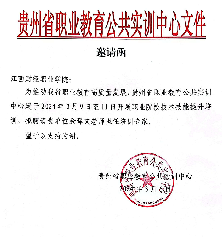 2024年3月9日至11日,由贵州省教育厅职业教育公共实训中心主办,新道科技股份有限公司贵州分公司协办的“2024年职业院校技术技能师资提升培训”在贵阳职教城成功举办。beat365官网会计学院余晖文老师受主办方邀请,担任此次培训专家,负责整个培训为期三天的“会计实务技能竞赛之业财信息化”实操与竞赛经验分享。