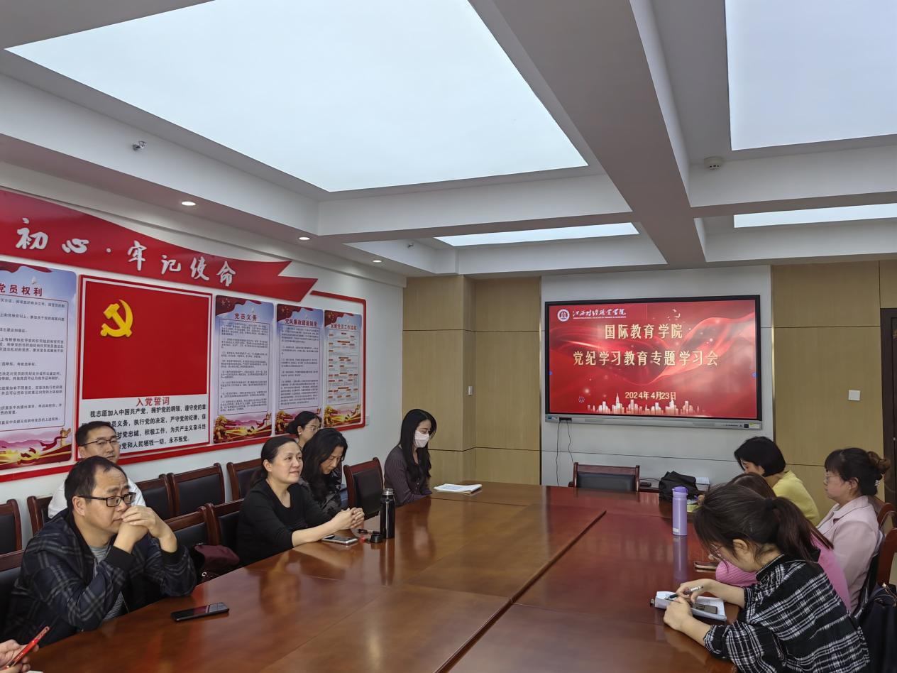 4月23日下午,国际教育学院党总支在浔阳校区综合楼918室召开党纪学习教育动员部署会。会议由党总支书记王胜华主持并作动员部署,学院班子成员、全体党员、教研室主任和班主任参加会议。