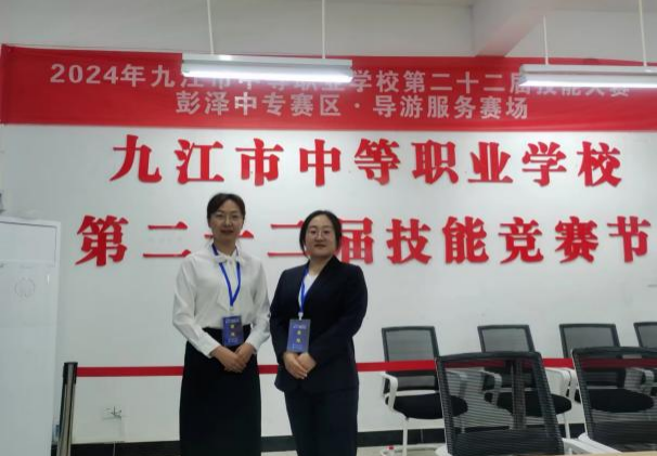5月7日-8日,由九江市教育局主办,九江市教育研究所和彭泽县旅游工业中等专业学校联合承办的九江市中职学校第二十二届技能大赛彭泽中专赛区导游服务赛项在彭泽县旅游工业中等专业学校(凉亭校区)成功举办。文化旅游学院教师李彦青、周雪菲受邀担任导游服务赛项裁判工作,并圆满完成执裁工作。