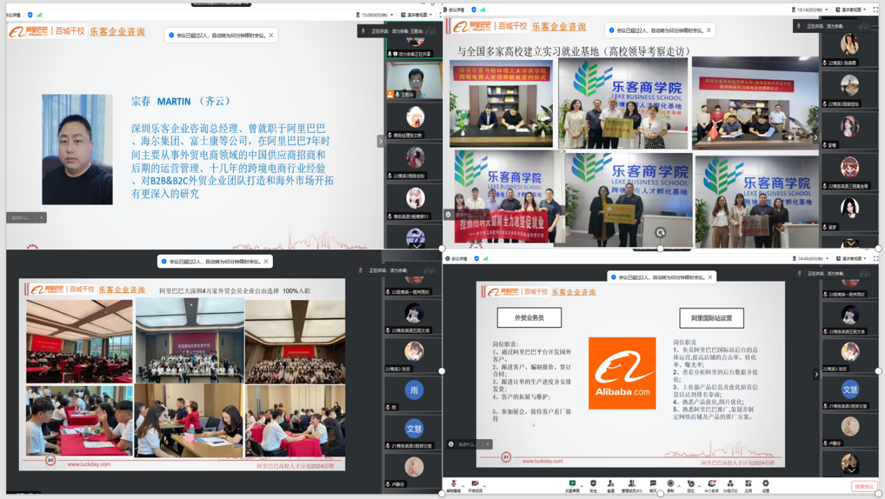 为扎实开展2024届毕业生的就业工作,促进毕业生更高质量更充分就业,2024年5月18日,国际教育学院举办了2024届毕业生线上专场招聘会,针对有就业需求的毕业生,推动毕业生高质量就业。此次招聘会邀请了深圳乐客企业咨询有限公司。招聘会由国际教育学院党总支书记王胜华主持。