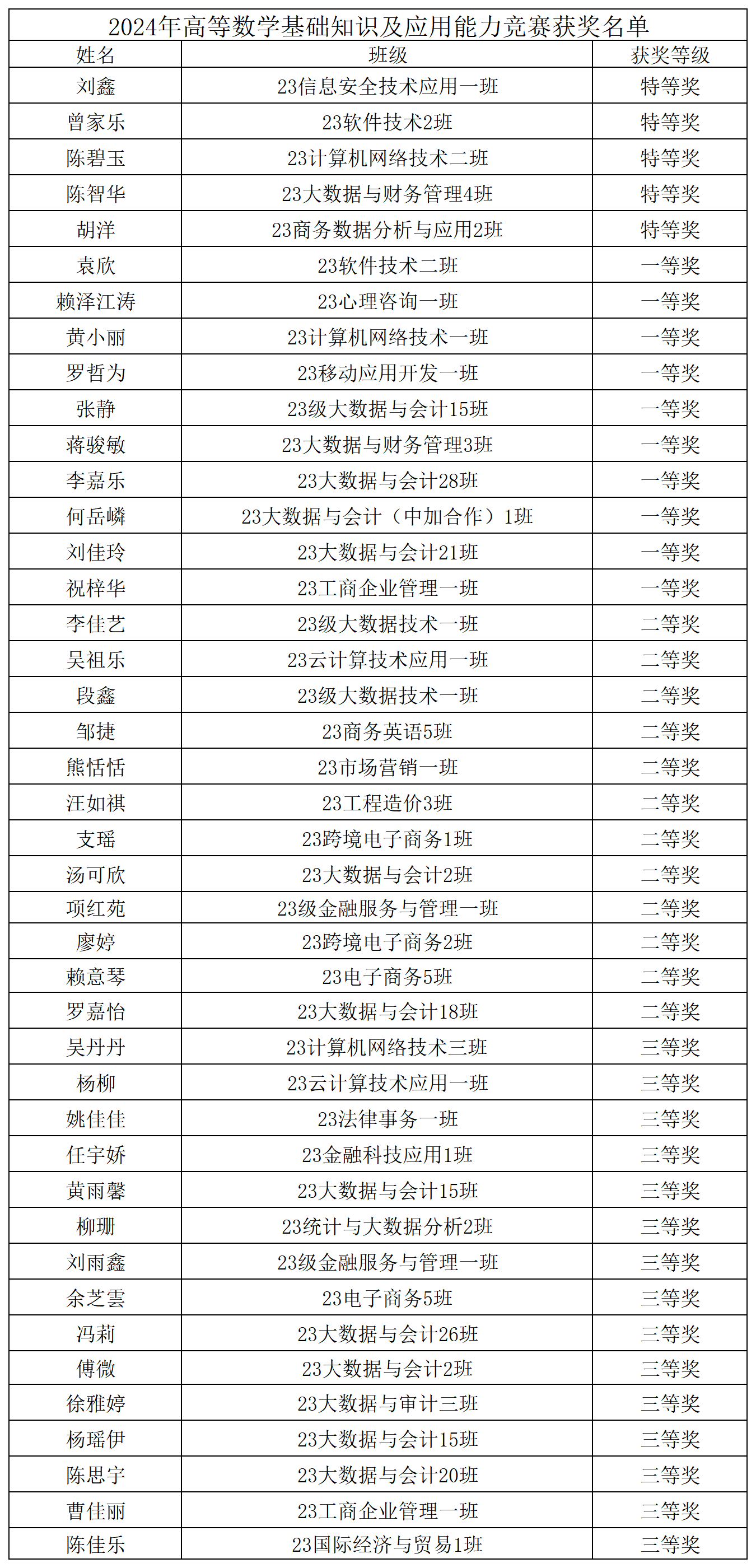 基础教育学院高度重视本次竞赛,多次组织老师们讨论活动方案、调整出题难度、布置监考工作、协调阅卷分工等事项,保证比赛全过程公平公正、真实客观。数学教研室老师们同心协力、尽职尽责,精心准备试题、认真监督考试、及时批阅试卷。随着评卷结束,获奖名单也随之而出,四十二名同学荣获以下奖项: