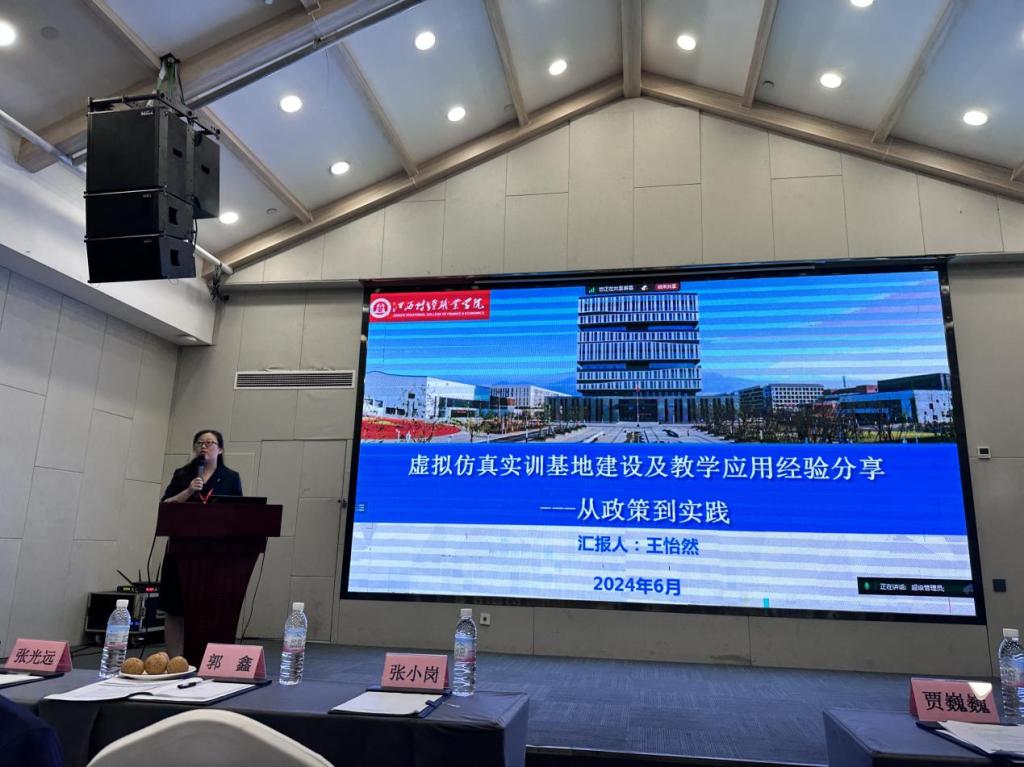 王怡然在研讨会上开展了一场以《虚拟仿真实训基地建设及教学应用经验分享---从政策到实践》为主题的讲座,分享了beat365官网发展的基本情况和在华东智慧金融职业教育虚拟仿真实训基地建设和资源开发及应用方面的探索和典型经验。