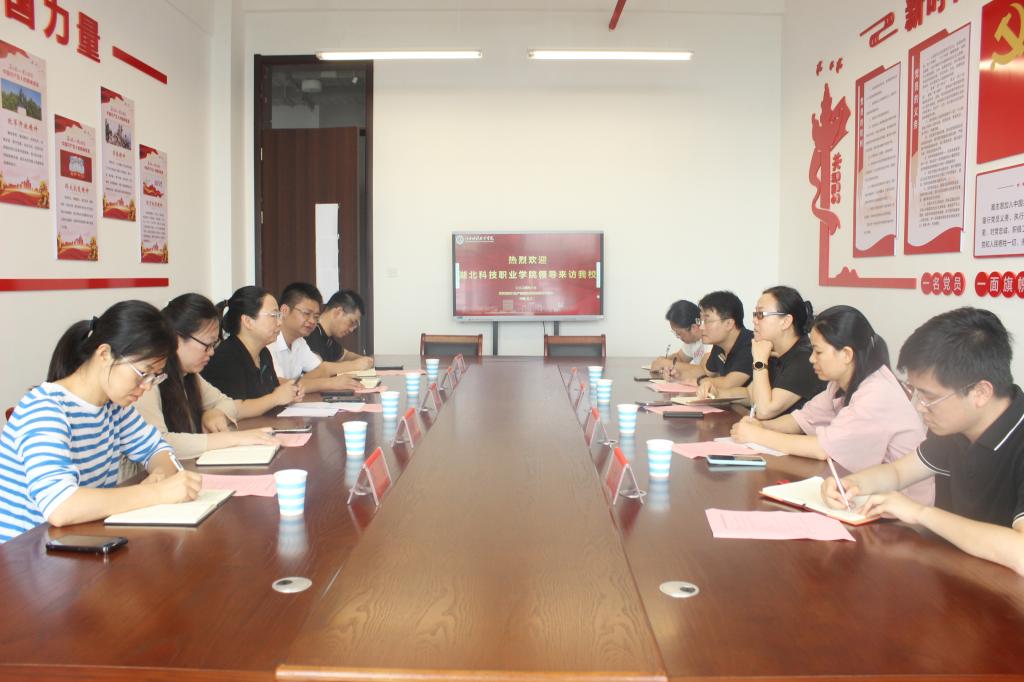 6月21日上午,数智服务行业产教融合共同体建设单位湖北科技职业学院、新道科技股份有限公司领导一行莅临会计学院考察调研,此行由湖北科技职业学院经贸学院院长刘志华带队,会计学院院长万凯,副院长谭玉林、齐洁,财税金融学院党总支副书记(主持工作)王怡然,金融教研室主任龚奕等热情接待了刘志华一行。