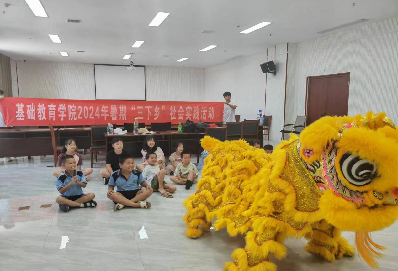 在流芳乡童心港湾,基础教育学院“同心燃梦”社会实践队为留守儿童们送去了中国传统剑术、武狮、八段锦等超过6个项目的传统体育运动课程,巧妙融入传统运动项目的哲学内涵、文化内涵与人文精神,向孩子们传递先民的聪明才智和创造精神,在孩子心中播下中华优秀传统文化的种子。