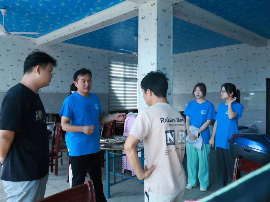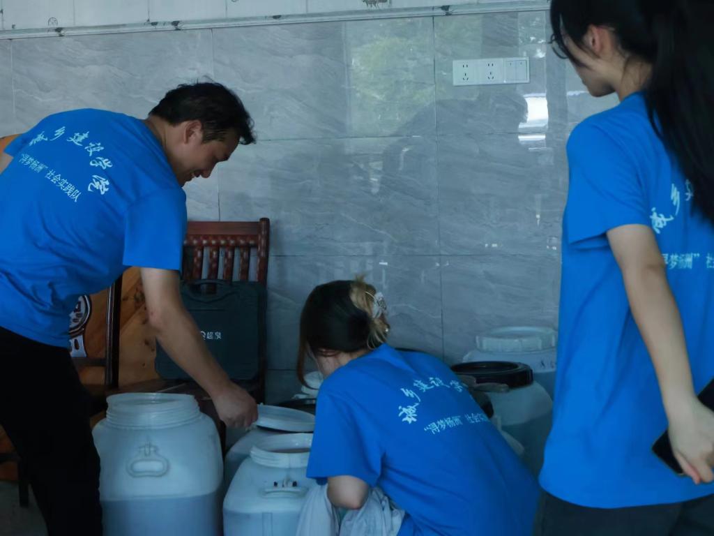 图为:“浔梦杨洲”社会实践队在蜂农家考察蜂蜜
