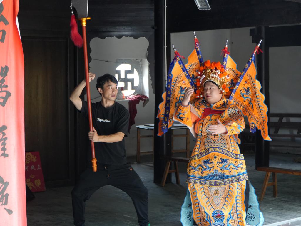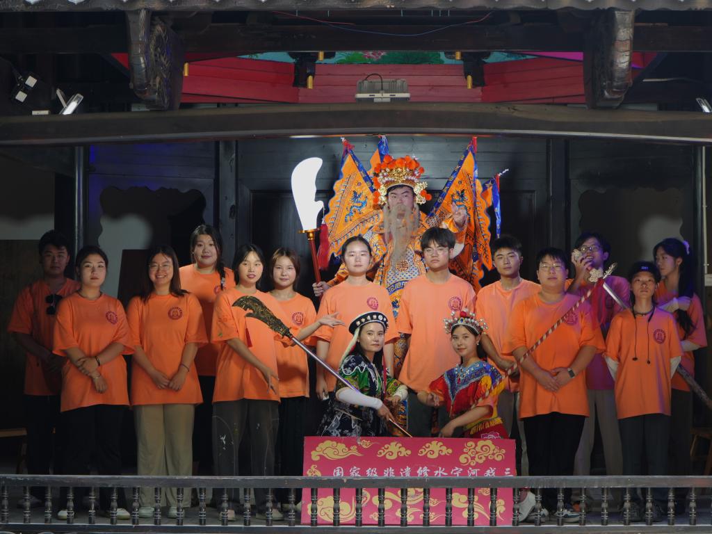 为了更全面地了解宁河戏的发展现状,探索“非遗+农旅”的乡村振兴新模式,实践队员们还深入溪口镇各村各户开展调研。“小时候,我最喜欢的就是跟着大人们去看傩戏了,那场面真是热闹得很。”一位老大娘回忆道。“现在虽然生活条件好了,但看戏的习惯一直没变,宁河戏就是我们的精神食粮。”在村头巷尾,实践队员们还听到了许多关于村民们听宁河戏的故事,感受到了村民们对这门古老艺术的深厚情感。