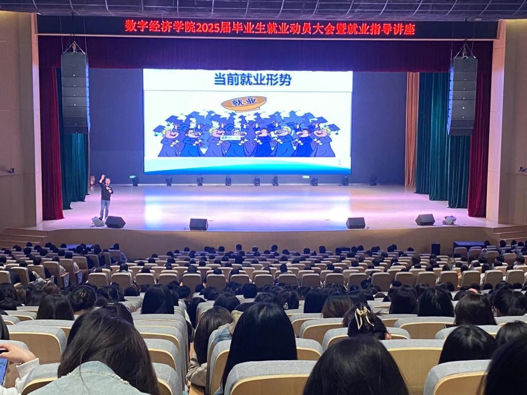 10月29日晚上7点,数字经济学院在八里湖校区会堂举行了2025届毕业生就业动员大会暨就业指导讲座。此次大会旨在帮助即将步入职场的毕业生们更好地了解就业形势、掌握就业政策,并提前做好就业准备。全体毕业班学生、班主任及数字经济学院党政班子全程出席本次会议。