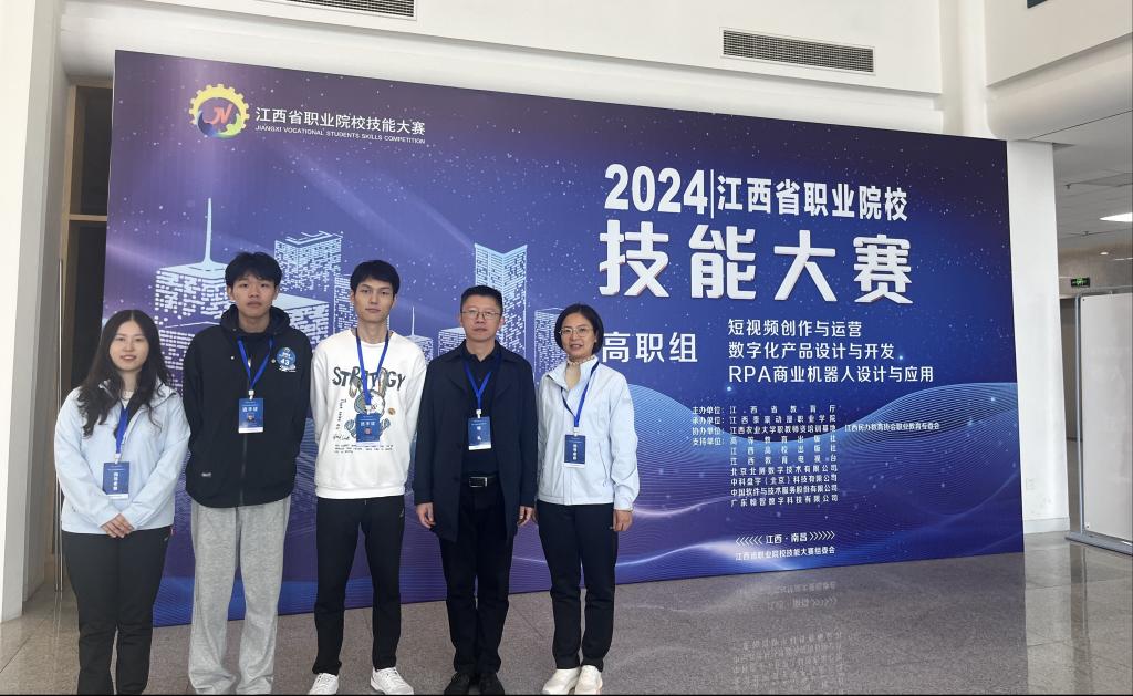 2024年11月1日,数字经济学院副院长谭宏、指导教师李梦芸和万亚婷带队前往南昌参加由江西省教育厅主办、江西泰豪动漫职业学院承办的江西省职业院校技能大赛特色赛项RPA商业机器人设计与应用竞赛。此次参赛队伍一共有49支,数字经济学院吴林东、曹东林凭借出色的表现,荣获了全省二等奖。