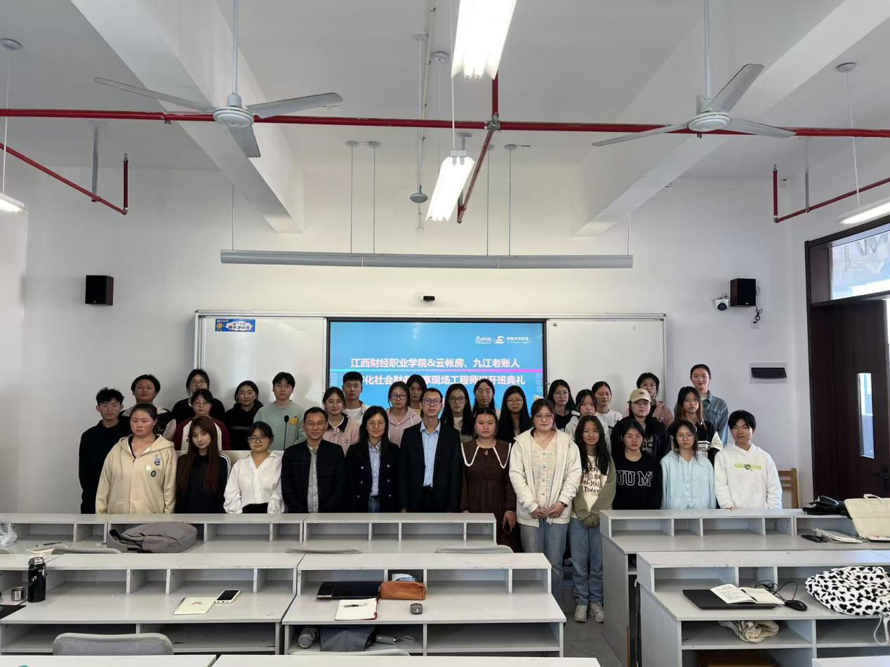 为继续深化产教融合,通过与行业优势企业开展校企合作,创新人才培养与就业新模式,搭建学生与企业之间的沟通桥梁,为学生打造就业创业好平台,2024年11月12日下午,会计学院联合云帐房网络科技有限公司、九江老账人财务公司举行第二期“数字化社会服务共享中心特训营”开班仪式。本次开班仪式于八里湖校区第一教学楼623教室举行,九江老账人财务咨询有限公司董事长刘勇、会计学院副院长齐洁及参与特训营培训的教师与2022级会计学院学生40余人参加了本次开班仪式。