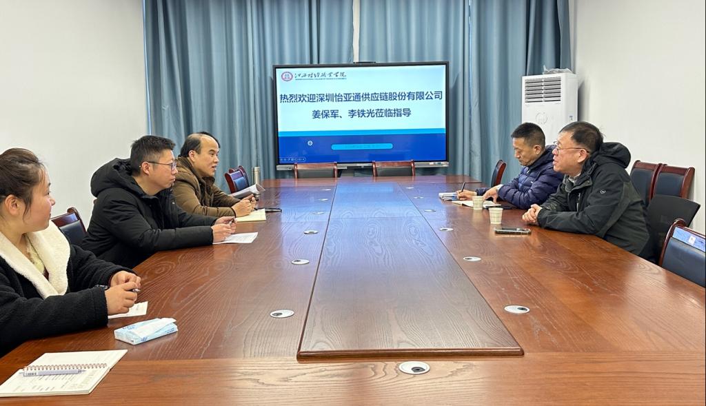 12月25日,深圳市怡亚通教育发展有限公司总经理姜保军、副总经理李铁光等一行来数字经济学院开展走访交流活动。本次活动旨在加强校企合作,促进教育链、人才链与产业链、创新链的有效衔接。数字经济学院副院长(主持工作)李俊峰、副院长谭宏及相关教师代表参会。