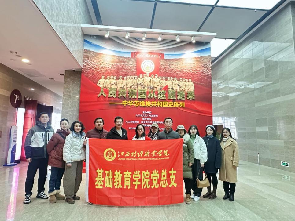 重温建国历史,坚守初心使命。为进一步强化党员的身份意识和责任意识,增强党组织的凝聚力和战斗力,基础教育学院教工党支部组织党员于2024年12月31日下午,前往九江市博物馆参观“人民共和国从这里走来”爱国主义展览,开启了一场深刻的建国历史学习教育之旅。