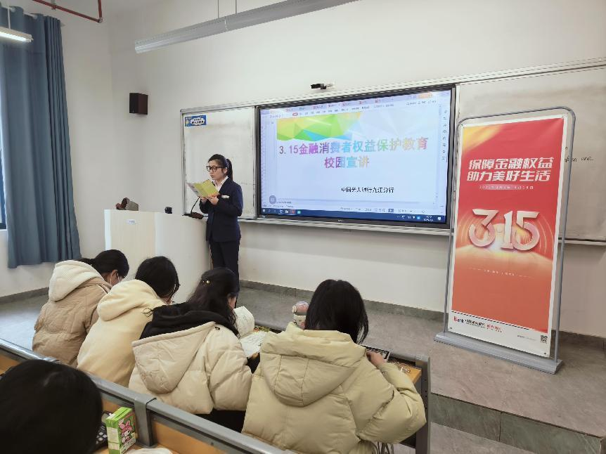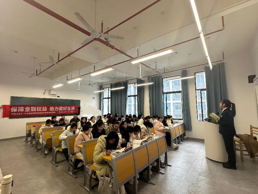 光大银行九江分行消保宣讲团队围绕《金融消费者权益保护实施办法》,系统讲解了消费者八大权益,包括财产安全权、知情权、自主选择权、公平交易权等,并结合近期曝光的“隐性收费”“AI金融诈骗”等热点案例,剖析金融乱象的常见套路。专家特别强调,大学生需警惕“先享后付”“预付式消费”等新型陷阱,避免因轻信虚假宣传陷入债务危机。