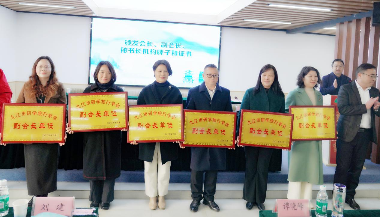 大会听取并审议通过了第一届理事会工作报告、第一届理事会财务工作报告和《九江市研学旅行学会章程》,选举产生了第二届理事会理事、理事会秘书长、学会会长、副会长、副会长单位、监事等,并现场进行了授牌。beat365正版唯一入口必一当选为副会长单位,文化旅游学院易娇艳当选研学旅行学会副会长,秦丹当选学会副秘书长,刘锋华当选学会监事。