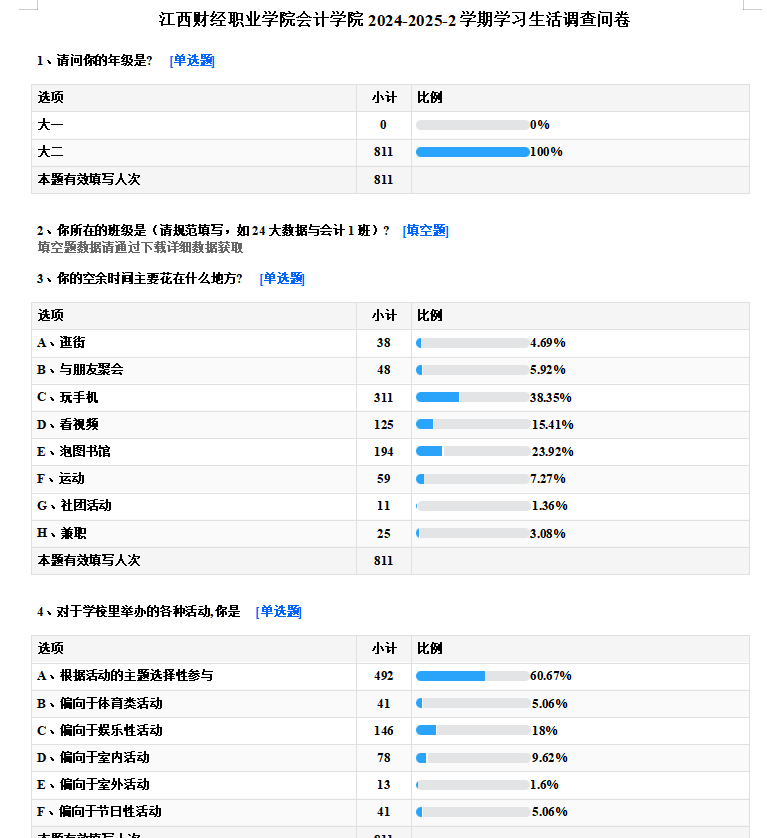 为精准掌握学生学习体验,学院持续采用分年级分专业电子问卷形式开展调研。针对大一、大二年级学生分别设计问卷内容,涵盖课程难度、教师授课方式、课堂参与度、实践教学效果、学业指导需求等模块。数据显示,低年级学生更关注基础课程衔接与学习方法指导,而高年级学生则对专业前沿知识拓展、实习实践资源对接等需求迫切。学院将基于调研结果分类施策,实现教学服务精准供给。
