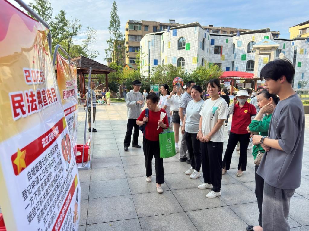 活动以校团委街舞协会的活力表演开场,迅速暖场。随后,学生们手持宣传手册走访社区,向居民介绍活动内容,对居民进行普法讲解。他们用通俗语言传递老百姓关心的法律知识,既吸引居民参与活动,又提升了自身实践能力。