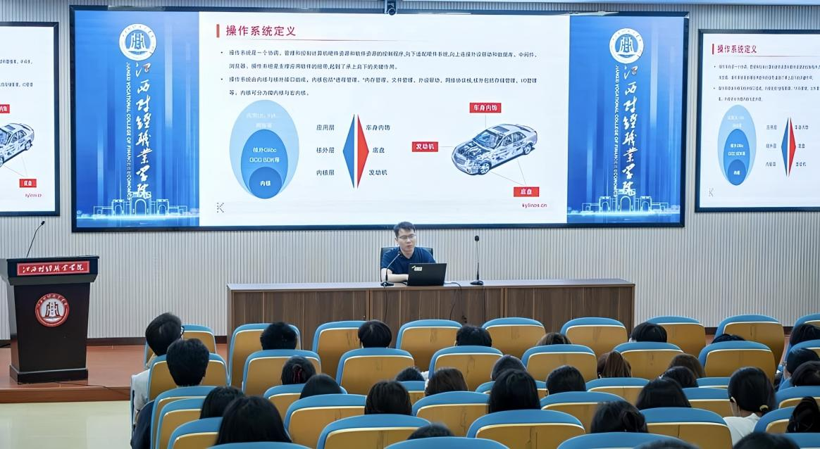 夏宇经理深耕信息技术应用创新领域多年,具备深厚的理论功底与丰富的实战经验。他曾主导参与江西省党政、教育、医疗、交通等关键领域的信创工程方案制定与项目建设,在国产化替代实践中积累了丰富的经验。讲座伊始,信息工程学院信息安全技术应用专业负责人杨凯致欢迎辞,对夏宇经理的到来表示热烈欢迎,并指出信创产业作为国家战略新兴产业,对培养高素质信息技术人才具有重要意义。