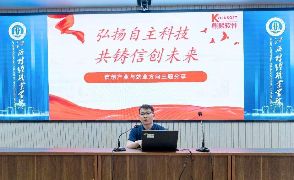 讲座过程中,夏宇经理围绕信创产业发展主线,从技术演进、产业生态、市场前景及职业规划四个维度展开分享。在“操作系统发展介绍”环节,他系统梳理了从传统操作系统到国产化自主可控技术的迭代历程,重点介绍了麒麟操作系统(KylinOS)在安全性、兼容性和稳定性上的技术优势,以及在政务、金融、能源等关键领域的应用案例。
