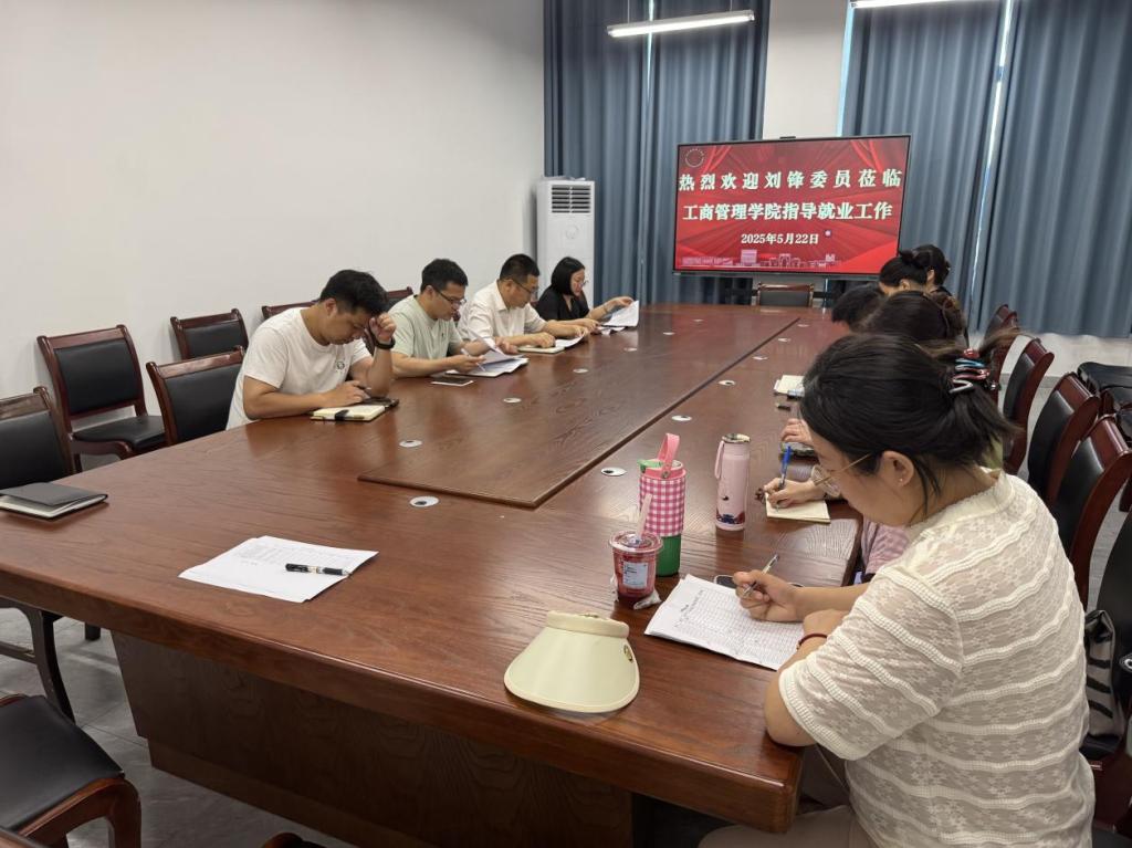 为加快推进毕业生高质量就业,5月22日,校党委委员刘锋深入工商管理学院调研指导毕业生就业工作。院党政班子成员、就业干事及全体毕业班班主任参加调研座谈会。