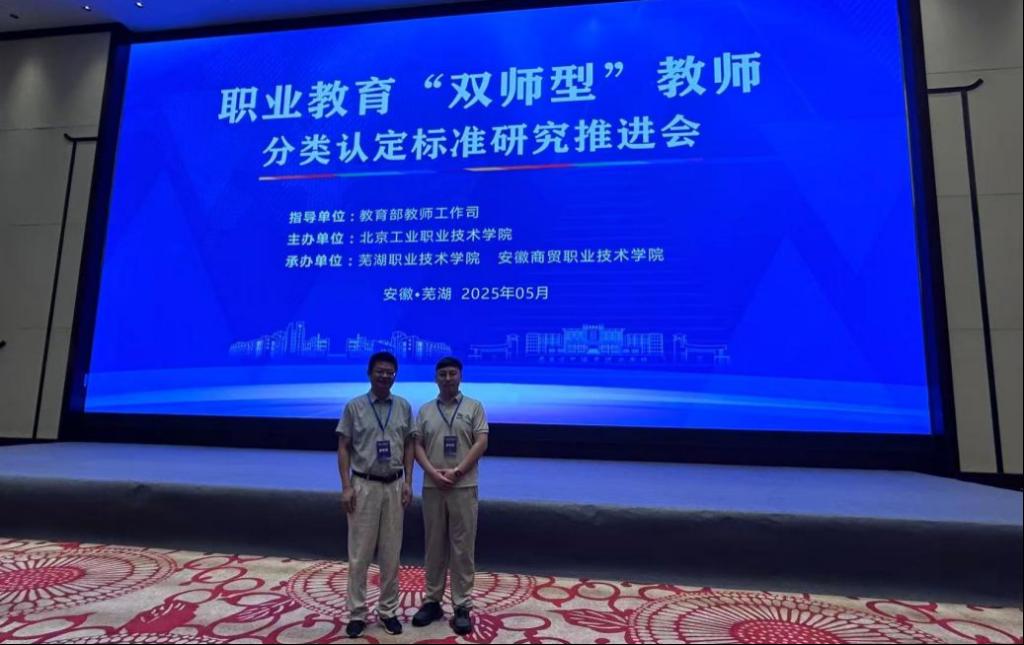 2025年5月25日至27日,由北京工业职业技术学院主办、芜湖职业技术学院和安徽商贸职业技术学院承办的“职业教育‘双师型’教师分类认定标准研究推进会”在安徽芜湖召开。beat365官网会计学院副院长谭玉林、党政办公室主任曾越受邀参会。