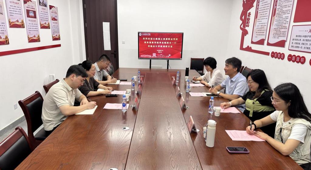 6月12日,云南国土资源职业学院商务信息学院副院长李忠岘一行到会计学院就大数据与会计专业双高建设、专业建设、产教融合、国际交流等内容开展调研交流,会计学院院长万凯、副院长谭玉林、党政办公室主任曾越在洙泗学馆B308会议室接待。