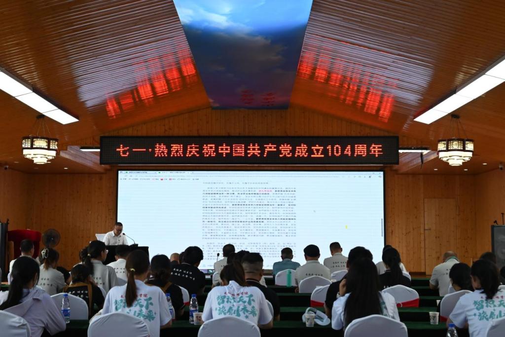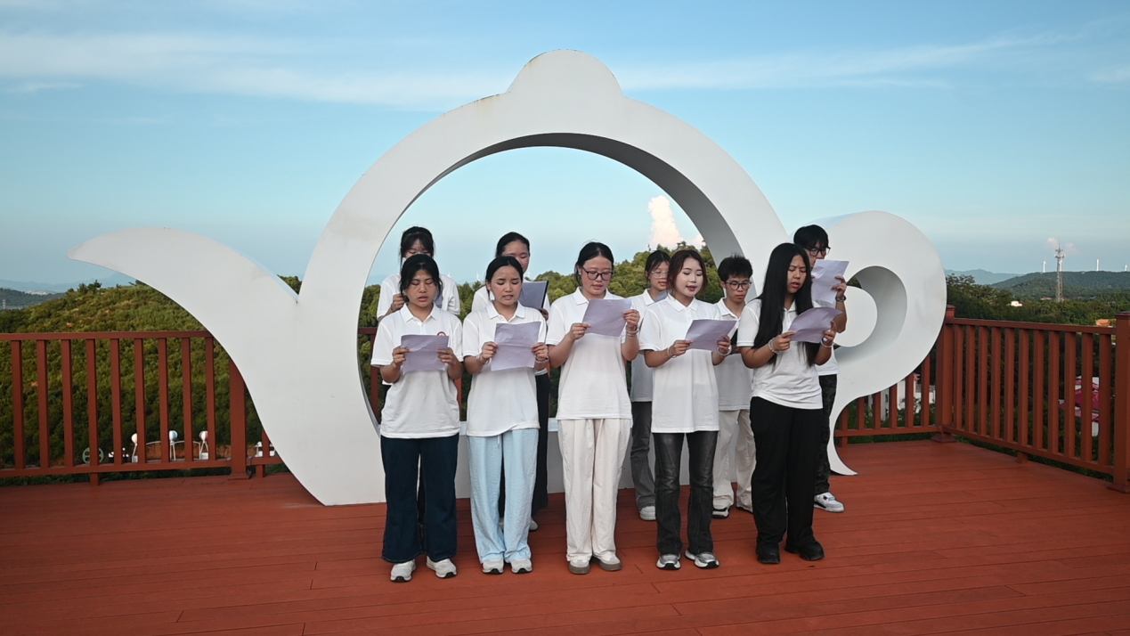 为庆祝中国共产党成立104周年,实践队员们来到海庐茶博园观景台开展红色主题教育。《可爱的中国》选段字字铿锵,《我和我的祖国》响彻山间。队员们挺拔的身姿、激昂的歌声,让红色基因与时代使命在青春诵读中实现跨越时空的传承。