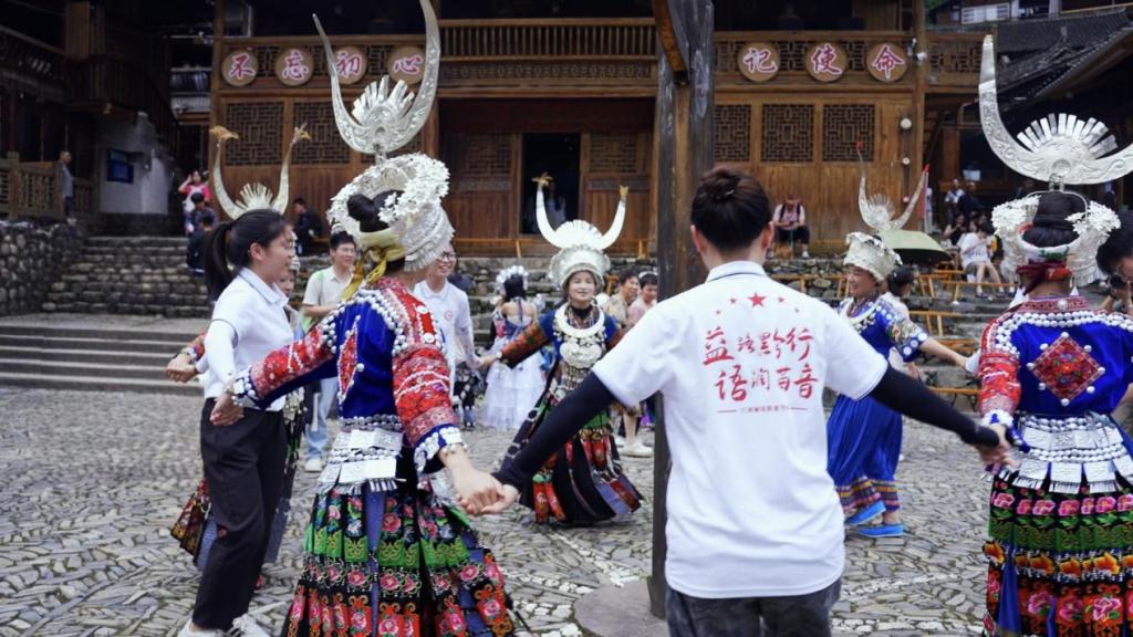 为铸牢中华民族共同体意识,促进各民族交往交流交融,7月8日至12日,“益路黔行 语润苗音”实践队成员们深入黔东南苗族侗族自治州舟溪镇,以“中华民族一家亲”为主题,通过艺术融合与创新的方式,展现了各民族间团结互助、和谐共生的美好图景。