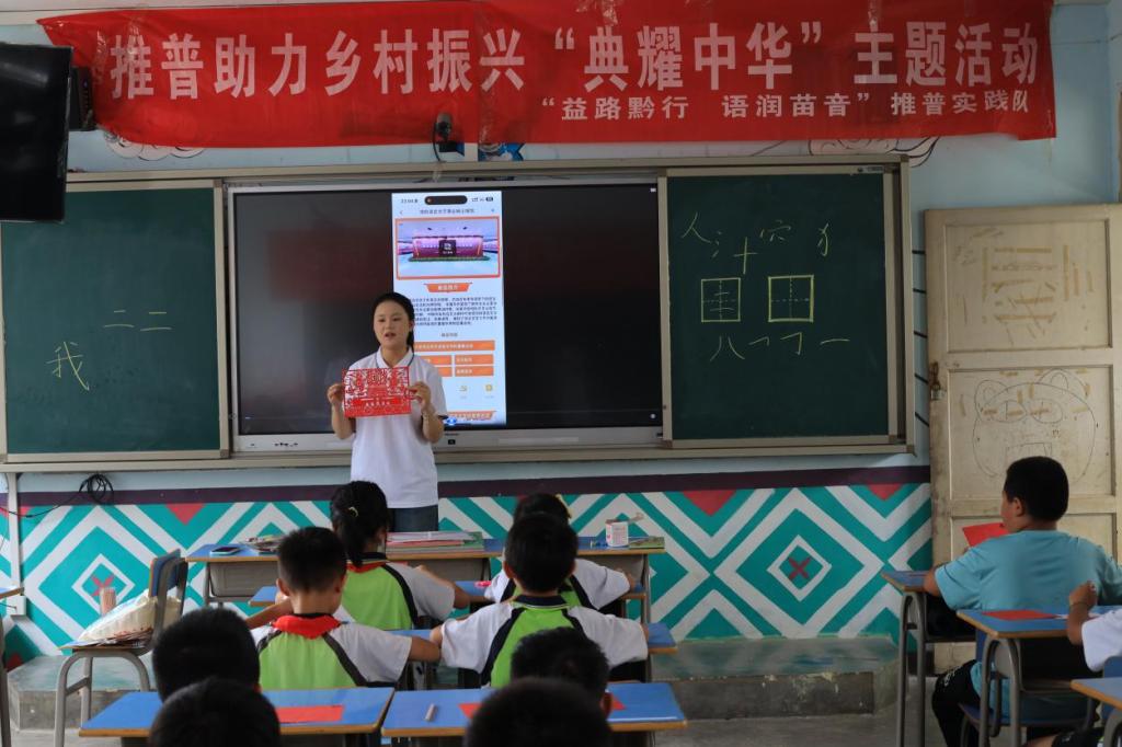 为深化乡村语言文化建设,传承中华优秀传统文化,7月9日至7月13日,“益路黔行 语润苗音”实践队走进贵州黔东南苗族侗族自治州,深入苗寨和当地小学课堂开展实践活动。队员们将普通话推广与民族文化传承相结合,通过组织芦笙技艺学习、苗族织锦体验和非遗剪纸教学等特色活动,为学生们带来了一堂堂生动有趣的文化实践课。