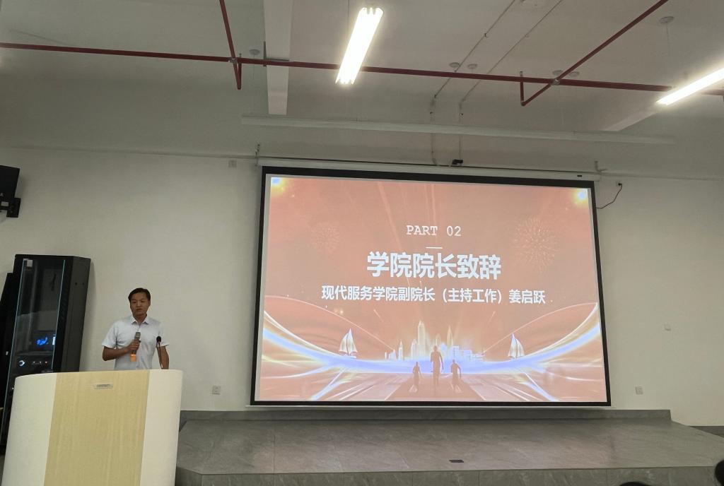 秋光为序,筑梦启航。9月15日下午,现代服务学院2025级新生入学教育暨军训动员大会在八里湖校区一教117阶梯教室举行。学院负责人、专业负责人、新生班主任、部分老生代表和全体新生参加了本次大会。