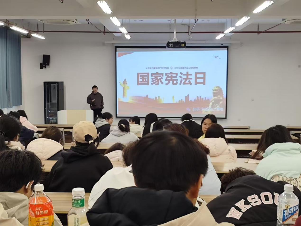为深入学习贯彻习近平法治思想,全面推进宪法宣传教育走深走实,现代服务学院积极响应九江市《2025年“宪法宣传周”工作方案》文件精神,于12月3日下午4时在一教116教室举行2025年“国家宪法日”有奖知识竞赛。本次活动面向法律事务专业25级新生,吸引了100余名学子踊跃参与,通过以赛促学的方式,有效提升了学生的专业认知和法治素养,营造了浓厚的校园法治文化氛围。