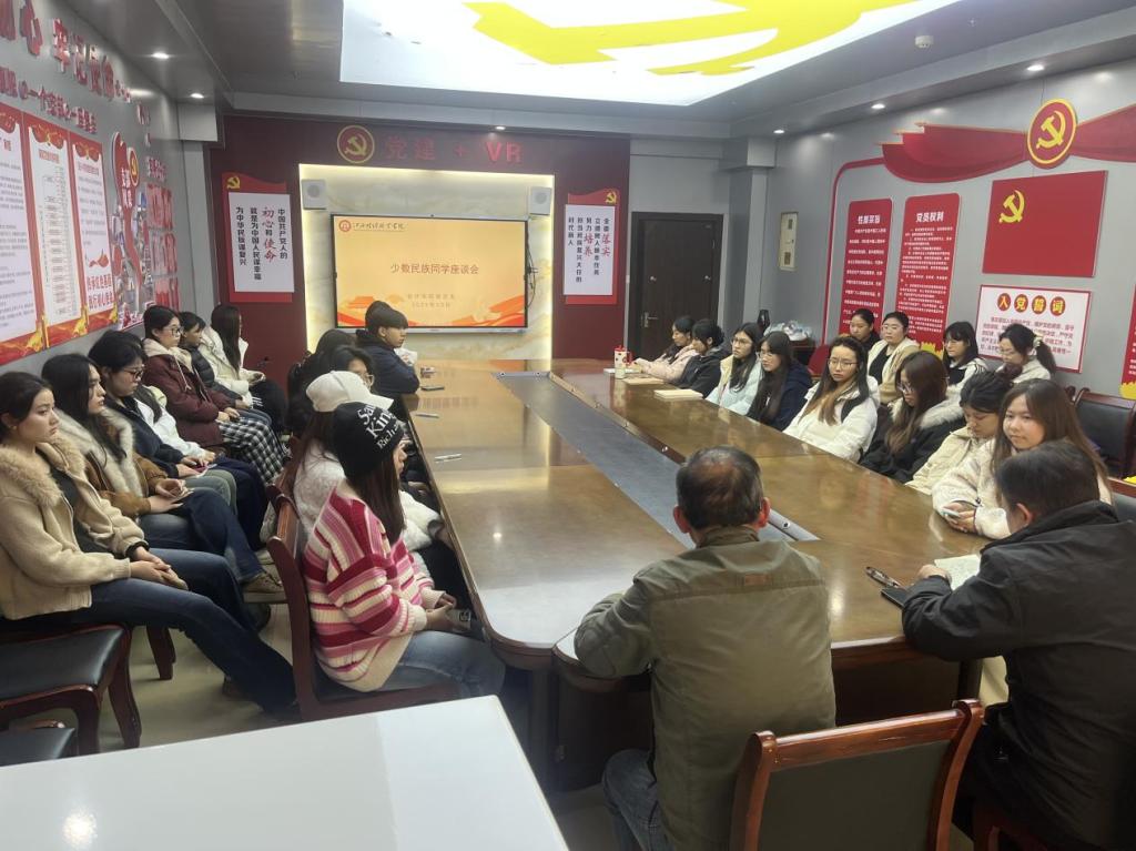 为深入了解2025级少数民族学生学习、生活和思想状况,12月11日下午4点30分,会计学院党总支在综合楼803会议室召开少数民族学生代表座谈会,会计学院党总支张家顺书记、姚庆云主任出席座谈会,2025级各班30余名少数民族学生代表参加座谈。