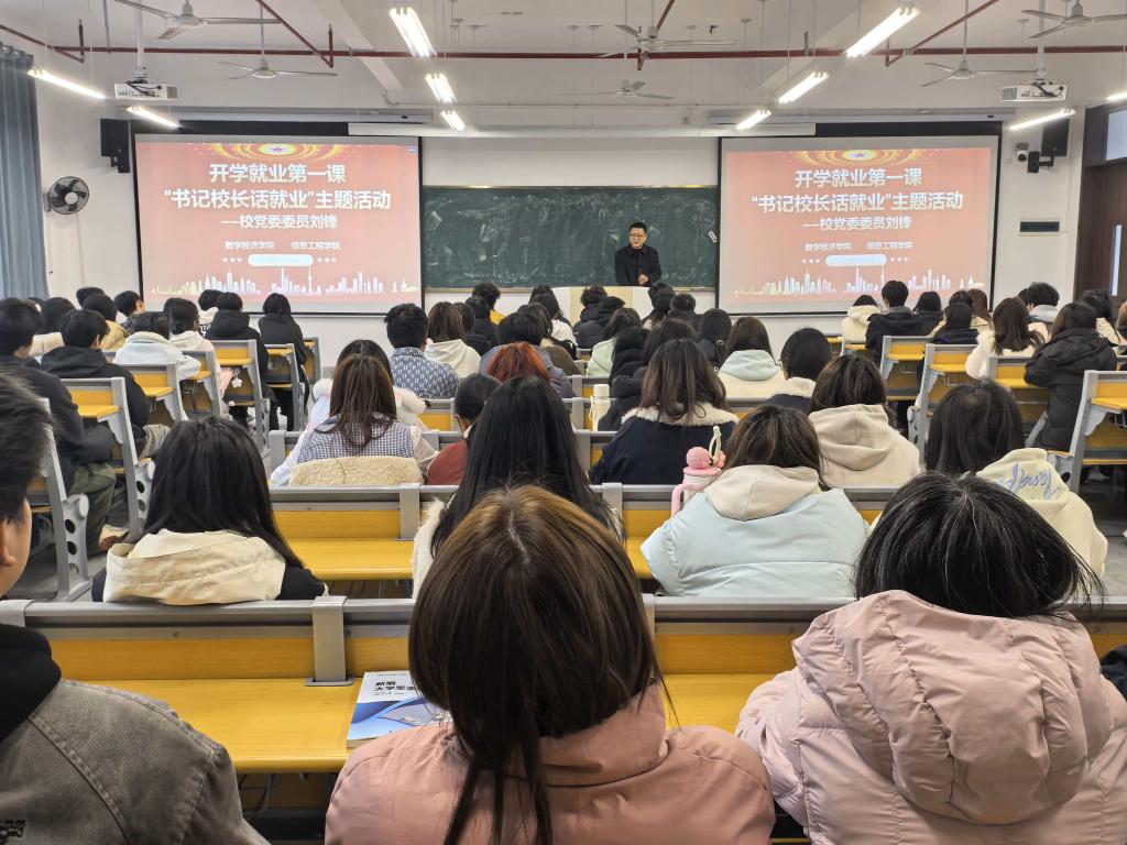 2026年3月20日,数字经济学院与信息工程学院联合开展“开学就业第一课”主题活动,校党委委员刘锋为两院学子授课,他从认清形势、找准定位、锤炼能力三个层面深刻剖析就业问题,引导学生树立正确就业观,做好生涯规划,为未来就业发展筑牢根基。