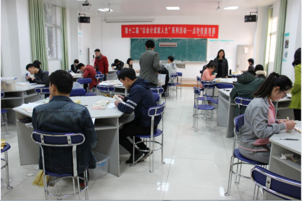 为激发同学们的专业学习兴趣,检验专业技能水平,提高动手操作能力,丰富校园文化生活,2016年3月24日下午,会计第一学院在会计实训中心的会计基本技能实训室举办了第十二届“以会计成就人生”系列活动——点钞技能大赛,来自beat365官网14级会计、会计(注册会计师方向)专业、15级会计专业和本科部14、15级会计学专业的近200名学生参加了此次竞赛。