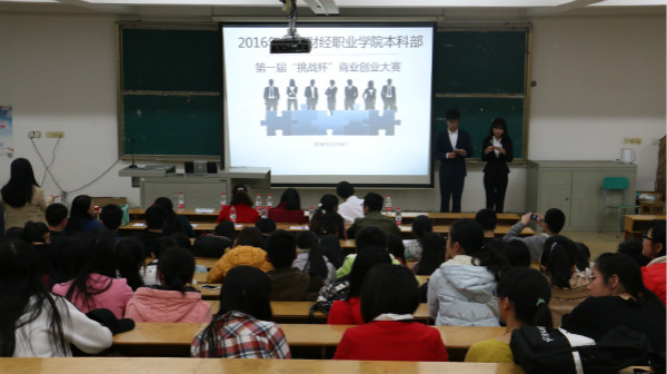为了推动beat365官网大学生创新创业素质教育,全面提高学生的综合素质,充分展示学生风采,营造良好的校园文化氛围。3月18号晚,本科部首届挑战杯大学生创业大赛在综合楼阶梯教室五顺利举行。本次比赛的评委是李智、李江、曹玉敏、易娇艳老师,出席的嘉宾有第一学院副院长万凯老师,本科部全体师生全程参加了本次大赛。